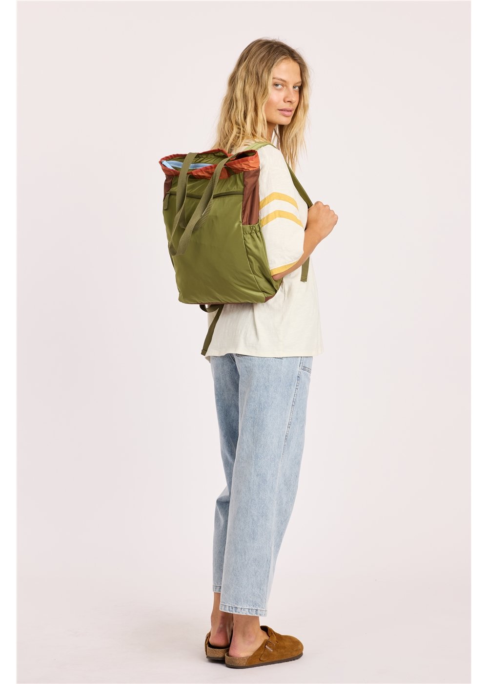 Meet your new adventure companion—the Deckhand Tote Backpack. This clever convertible design flips between backpack and tote modes, so you can carry it however suits your vibe. The eye-catching colorblock nylon exterior turns heads while the padded, adjustable shoulder straps and sturdy handles keep you comfortable whether you're commuting, traveling, or exploring. Stay organized with a front zip pocket for quick access, side pockets for water bottles or sunglasses, and an internal padded laptop compartment with velcro closure to keep your tech safe. An internal patch pocket rounds out the storage, making this the ultimate carryall for anyone who needs to bring their whole world along. Durable, stylish, and seriously functional—this bag does it all.