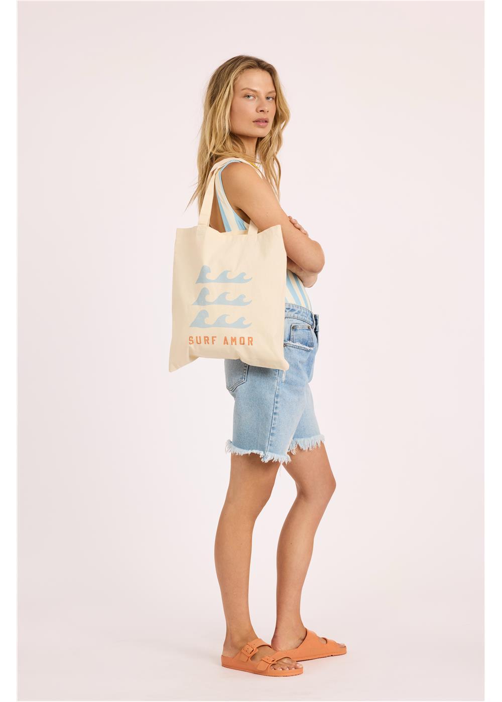 The Surf Amor Tote is your new essential carry-all for beach days, weekend getaways, and everyday adventures. Made from durable washed canvas, this oversized tote features a fun graphic that captures the carefree spirit of sun and surf. The spacious interior easily fits everything from your swimsuit and sunscreen to snacks and sunglasses, while the sturdy handles make it comfortable to carry whether you're heading to the shore or running errands around town. Relaxed, reliable, and ready for anything, the Surf Amor Tote is the perfect companion for living your best laid-back life.