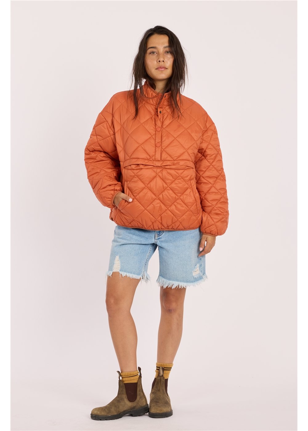 Stay warm and do good with the Out N About Jacket—a cozy puffy that proves sustainability can be seriously stylish. Crafted from recycled nylon, this eco-friendly layer keeps you toasty without the guilt. The quilted stitching adds visual interest and helps trap warmth, while sleek matte snaps give it a modern, polished finish. Handy welt pockets keep your essentials secure and add to the functional design. Whether you're running errands around town, heading out for an adventure, or just need an extra layer on cooler days, this jacket delivers comfort and style in equal measure. The relaxed fit makes it easy to layer over anything in your wardrobe, from tees to sweaters to dresses. Playful, practical, and planet-friendly—this jacket is your new go-to for looking great while making choices that matter.