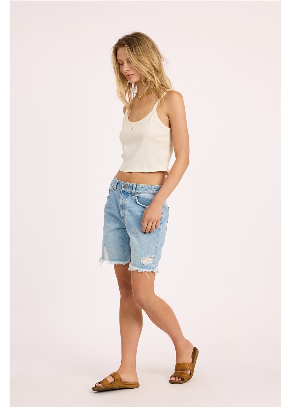 Meet your new wardrobe staple—the Beach Crush Knit Tank is the kind of piece you'll reach for again and again. Crafted from soft ribbed knit, this fitted tank hugs you in all the right ways while staying supremely comfortable. The classic scoop neck is flattering and versatile, while delicate pico edge trim adds a feminine touch that elevates the whole look. A fun front graphic gives it personality and makes it perfect for casual days, beach trips, or layering under your favorite jacket. Whether you're pairing it with shorts, jeans, or a flowy skirt, this tank is the ultimate go-to for effortless style that works from morning to night.