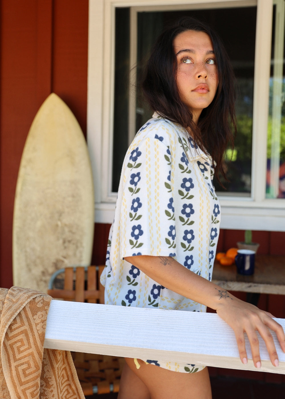 Channel your inner beach wanderer with the Beach Treasures SS Knit—a printed cotton terry camp shirt that's bursting with personality. The soft, absorbent terry fabric feels amazing against your skin and keeps you cool when temperatures rise, while the fun printed design captures that carefree coastal spirit. The button front makes it easy to layer or wear open over a tank, and practical front patch pockets are perfect for stashing your sunglasses, phone, or beach finds. Whether you're lounging by the water, grabbing coffee with friends, or exploring a new town, this shirt brings that relaxed, retro-inspired vibe that makes everyone want to join your adventure. It's the kind of piece that looks effortlessly cool and feels even better.
