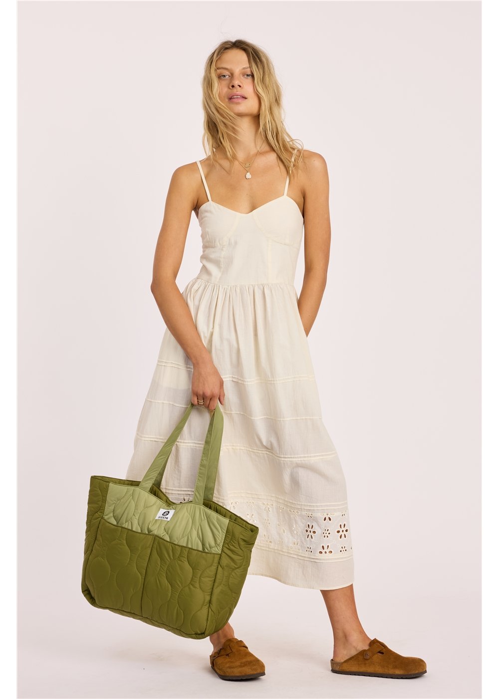 Carry your essentials in style with the Roam Wild Tote—a quilted nylon oversized bag that's as practical as it is chic. The spacious interior holds everything you need for a day out, while the front pockets keep frequently grabbed items within easy reach. The internal zip pocket with snap closure provides secure storage for valuables, so you can travel with peace of mind. The quilted nylon construction is durable and easy to clean, making it perfect for everyday use, beach trips, or weekend getaways. The oversized silhouette works with any outfit, from casual tees and shorts to dresses and jackets. The structured design keeps its shape while remaining lightweight and comfortable to carry. Whether you're heading to the market, the beach, or just out and about, this tote is your reliable companion. Functional, stylish, and seriously spacious—this bag is about to become your new go-to for carrying it all.